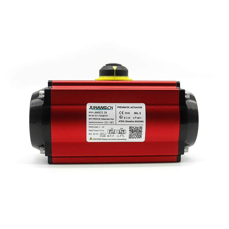 Ang rack at pinion pneumatic actuator na dobleng kumikilos JHA0075DA, mataas na kalidad, mababang alitan, mahabang buhay, ang mga oras ng paglipat ay hanggang sa higit sa 1 milyong beses, mataas na katatagan.