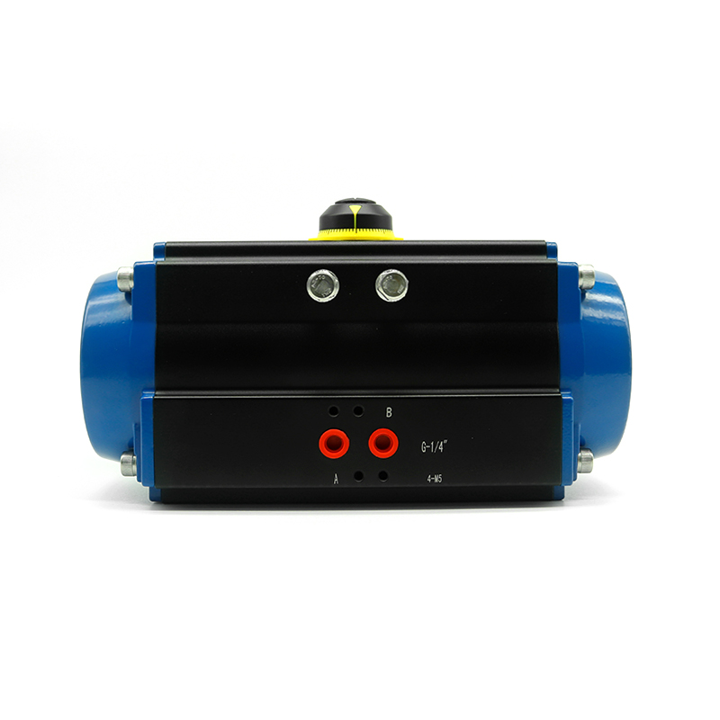 Ang tuktok ng dobleng kumikilos na pneumatic actuator ay umaayon sa VDI/VDE 3845 standard na pag -install, na maginhawa para sa pag -install ng posisyon, limitasyon ng switch, at iba pang mga accessories.