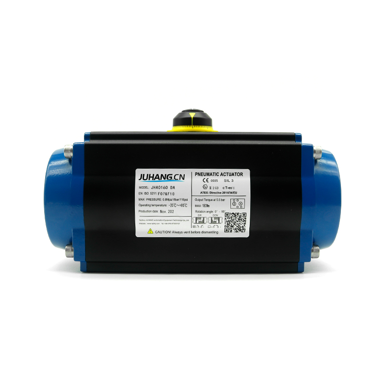 Rack at Pinion pneumatic actuator Double Acting JHA0160DA, Mataas na kalidad, mababang alitan, mahabang buhay, ang mga oras ng paglipat ay hanggang sa higit sa 1 milyong beses, mataas na katatagan.