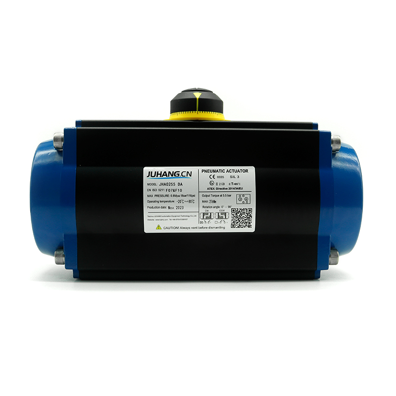 Ang rack at pinion pneumatic actuator na dobleng kumikilos JHA0255DA, mataas na kalidad, mababang alitan, mahabang buhay, ang mga oras ng paglipat ay hanggang sa higit sa 1 milyong beses, mataas na katatagan.